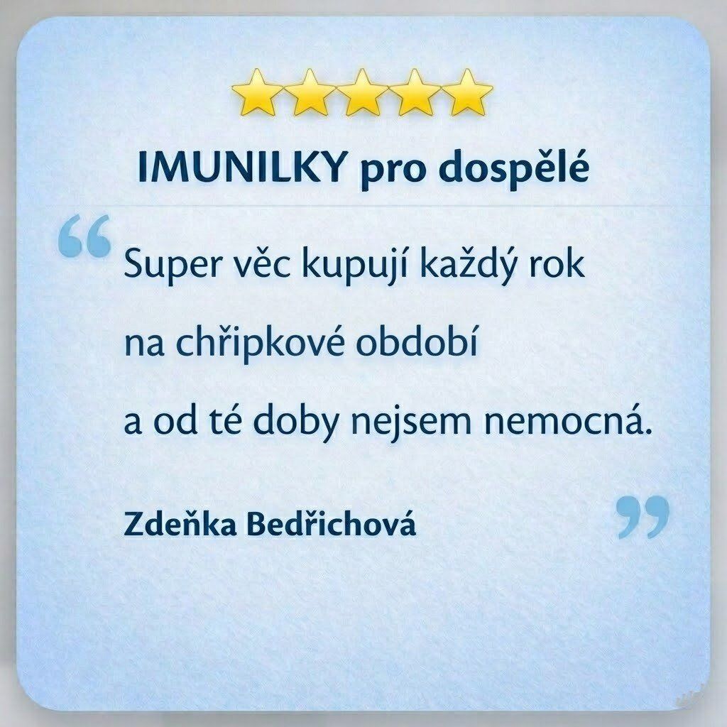 - IMUNILKY pro dospělé (60 tobolek) - unikátní kombinace kolostra, mateří kašičky a dalších přírodních imunostimulantů