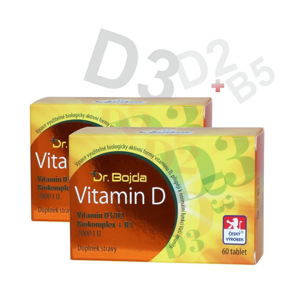 VITAMÍN D3/D2 DUO 2000IU biokomplex + B5 2x60tbl. Dr. Bojda pro imunitu, energii, kosti